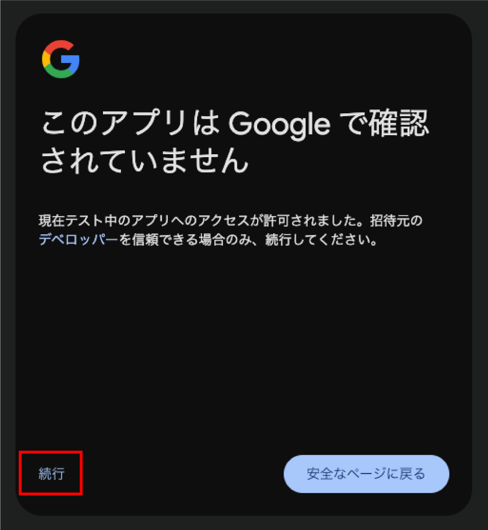 - 初回認証でメール権限を許可していない