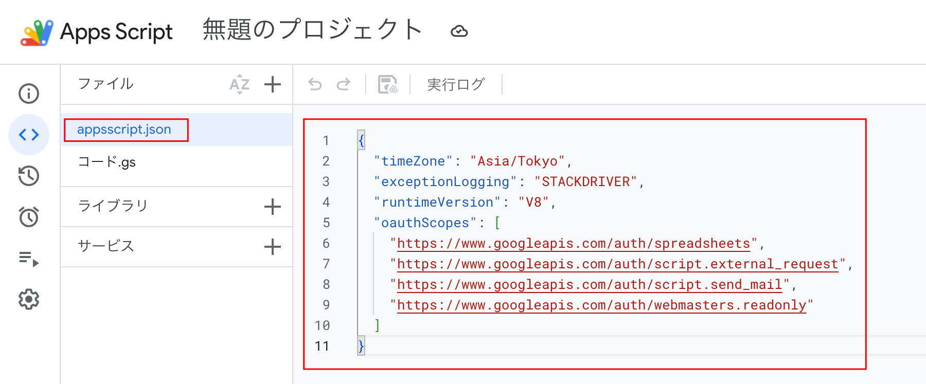 - appsscript.json を表示して設定する