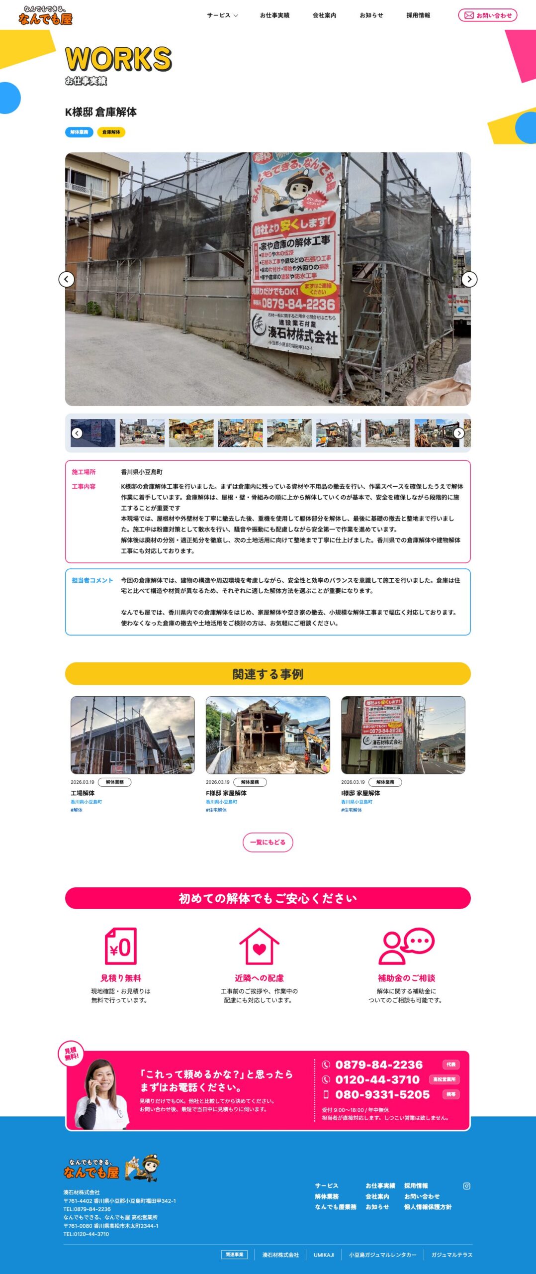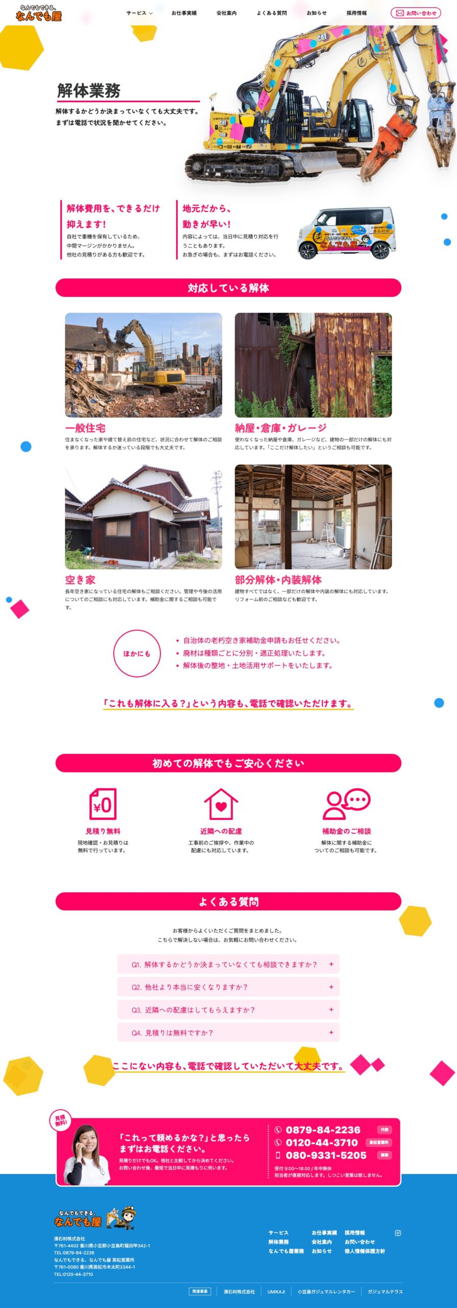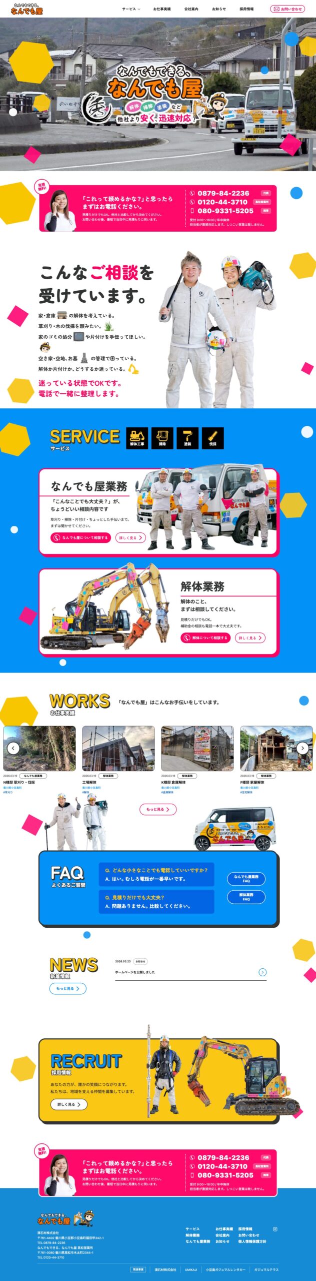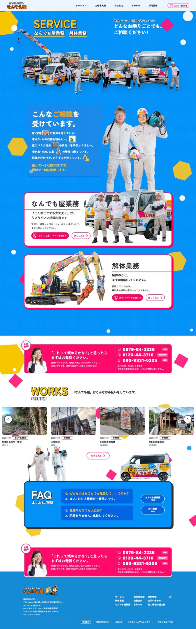 解体工事・便利屋サービス・不用品回収・外構工事の企業向けに、湊石材株式会社様のサービス内容を整理し問い合わせにつなげることを目的としたサービスサイトを制作しました。