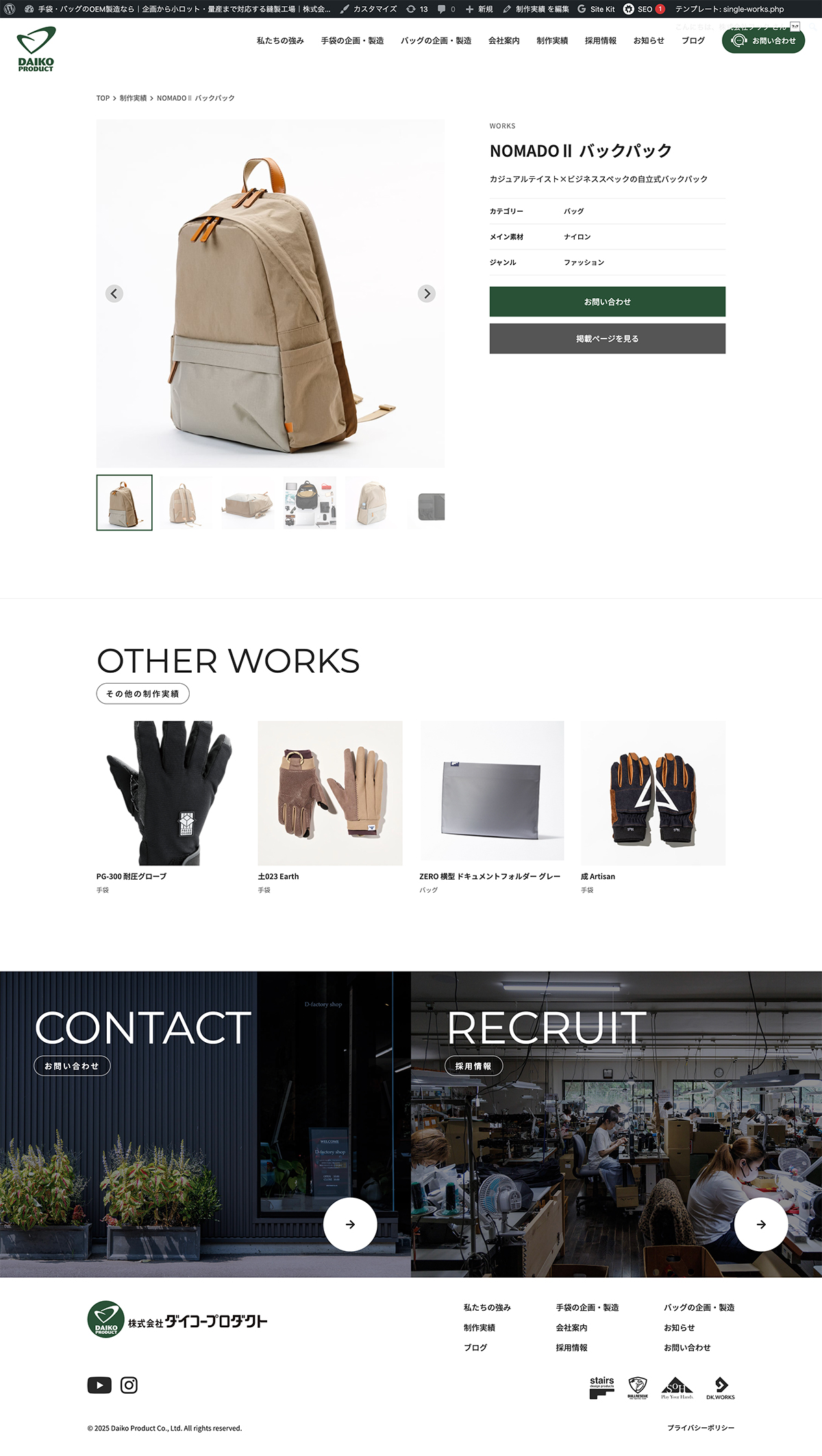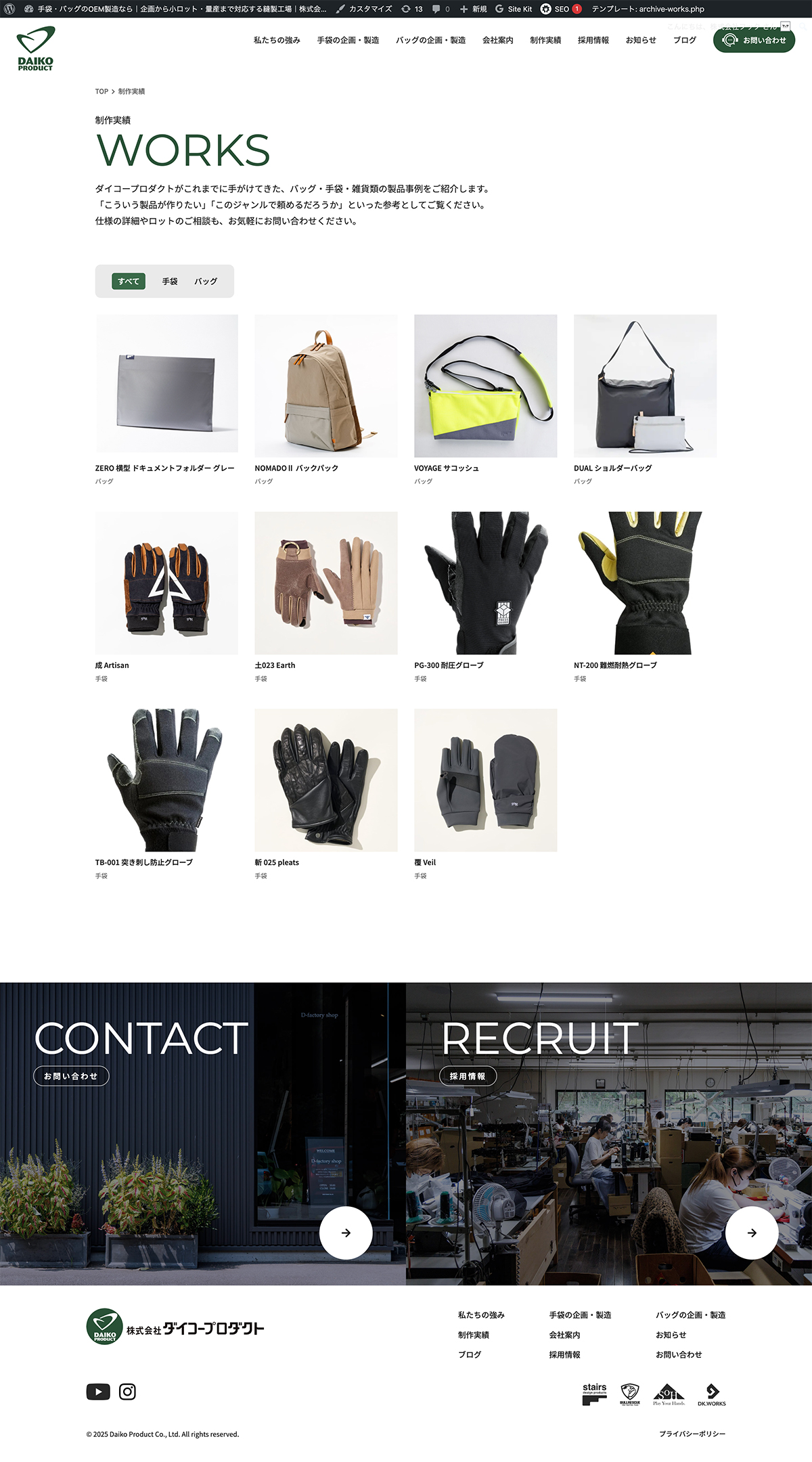 製造業(手袋・バッグ OEM/ODM製造)の企業向けに、株式会社ダイコープロダクト様の事業内容と強みを分かりやすく伝えることを目的としたコーポレートサイトを制作しました。